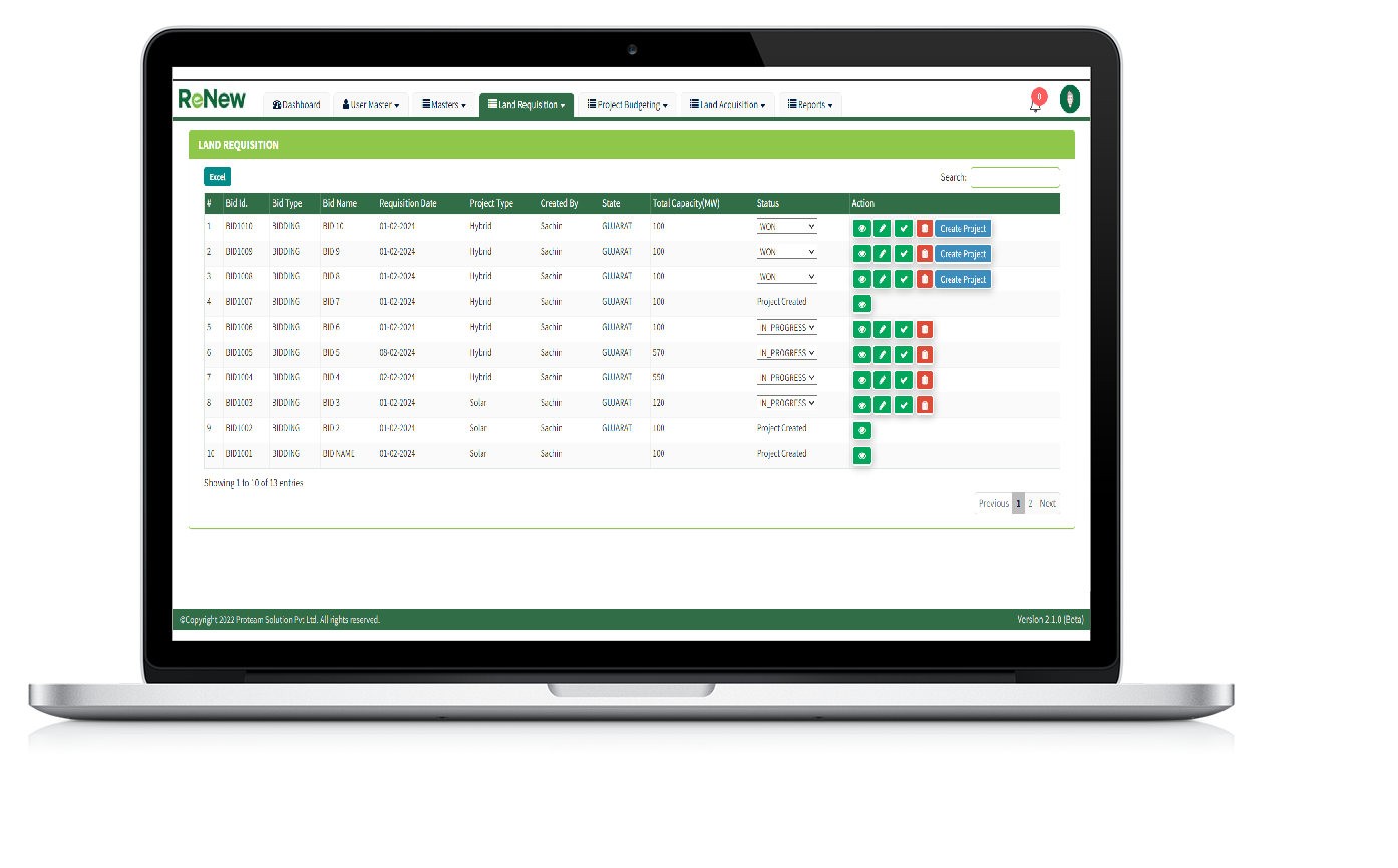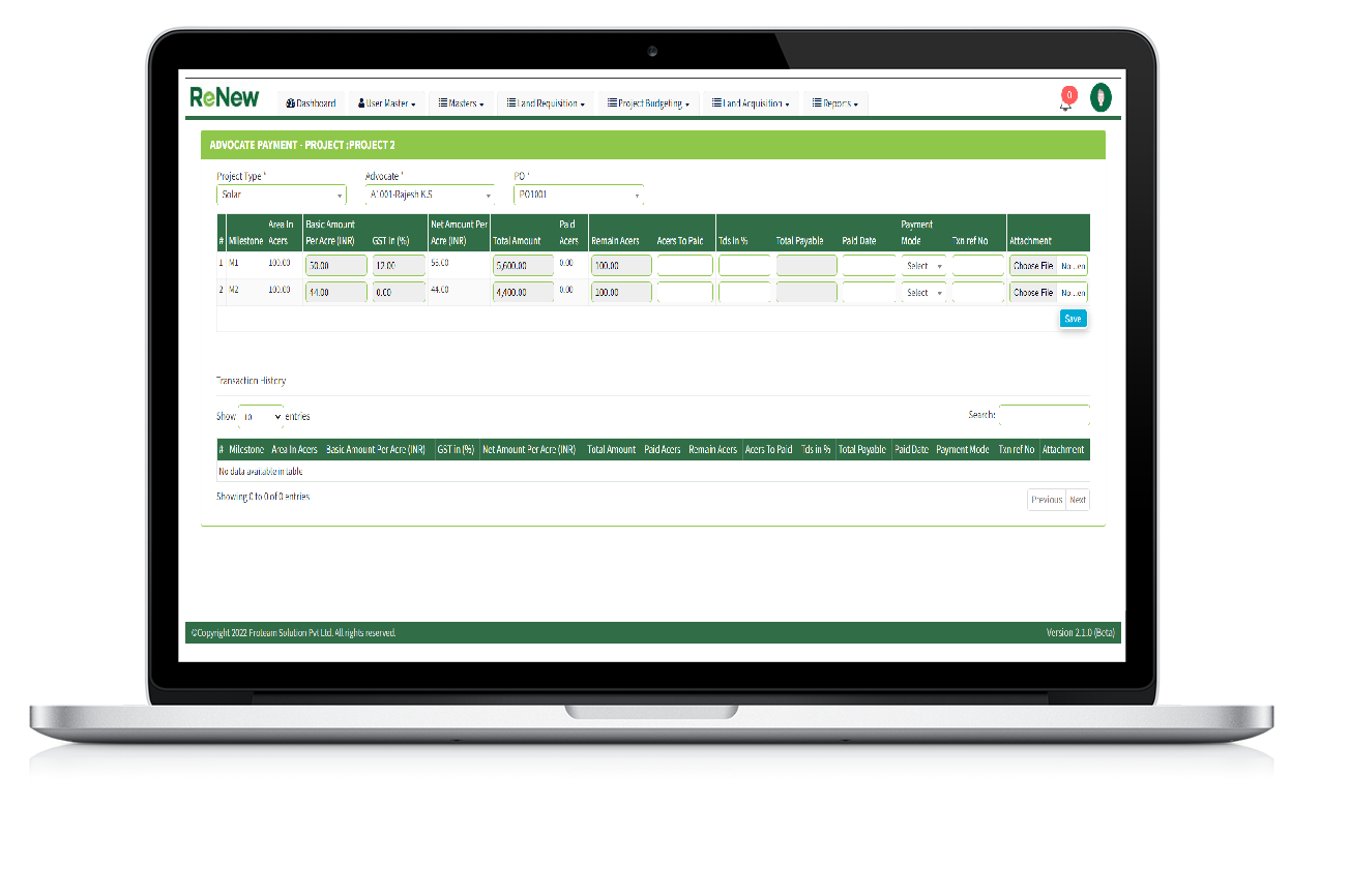 This tool has modules related to Land requisition, Project