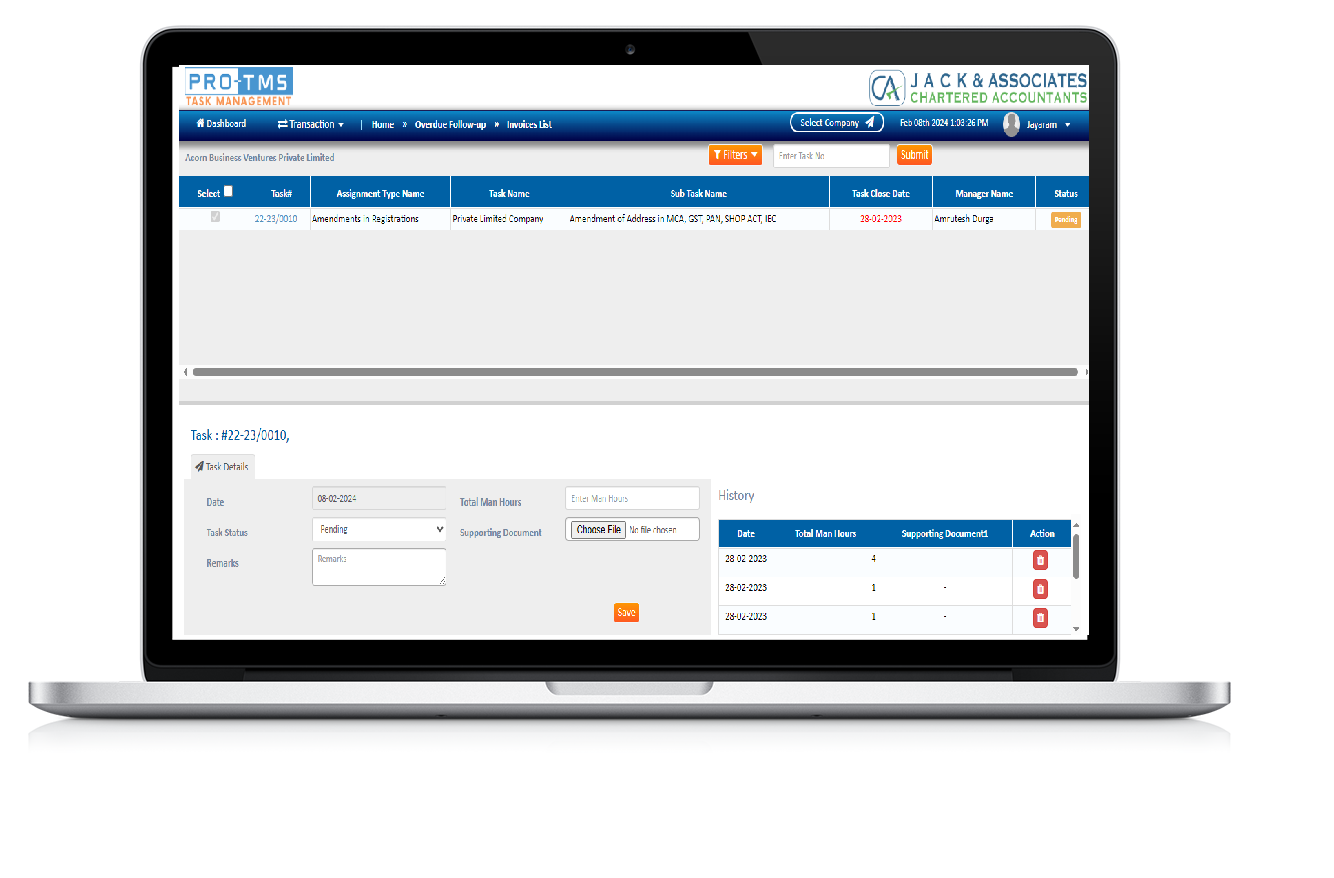 Progress Tracking : Monitor the progress of tasks, view status updates, and track