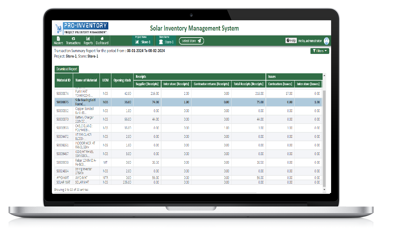 Tracking Complete Life cycle of Material -right from Initial survey to Final Handover of project.