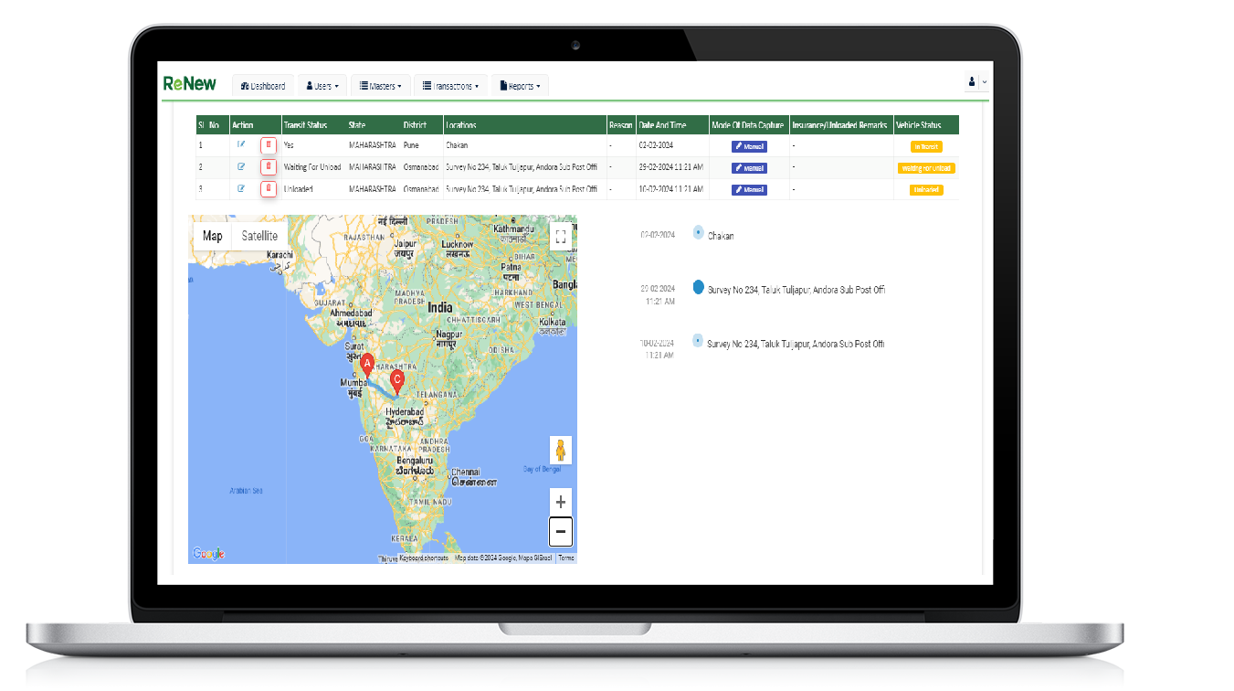 Tracks complete movement of vehicles from origin till destination through mobile application.